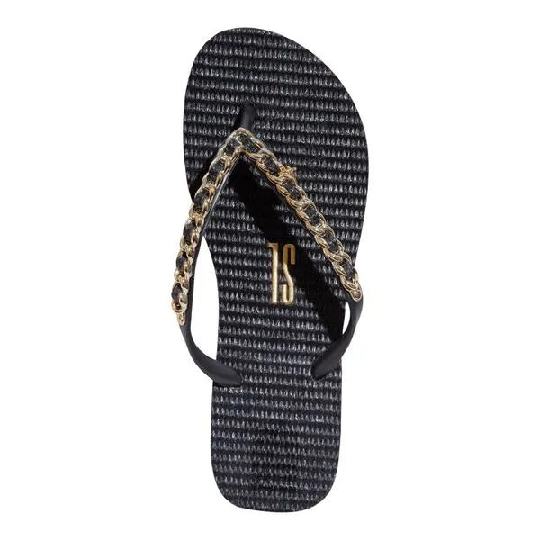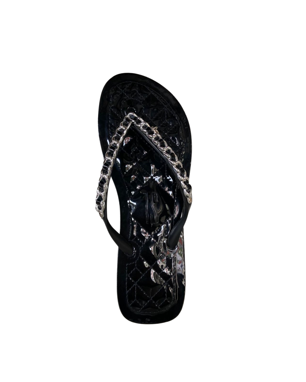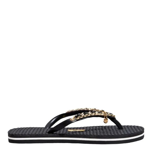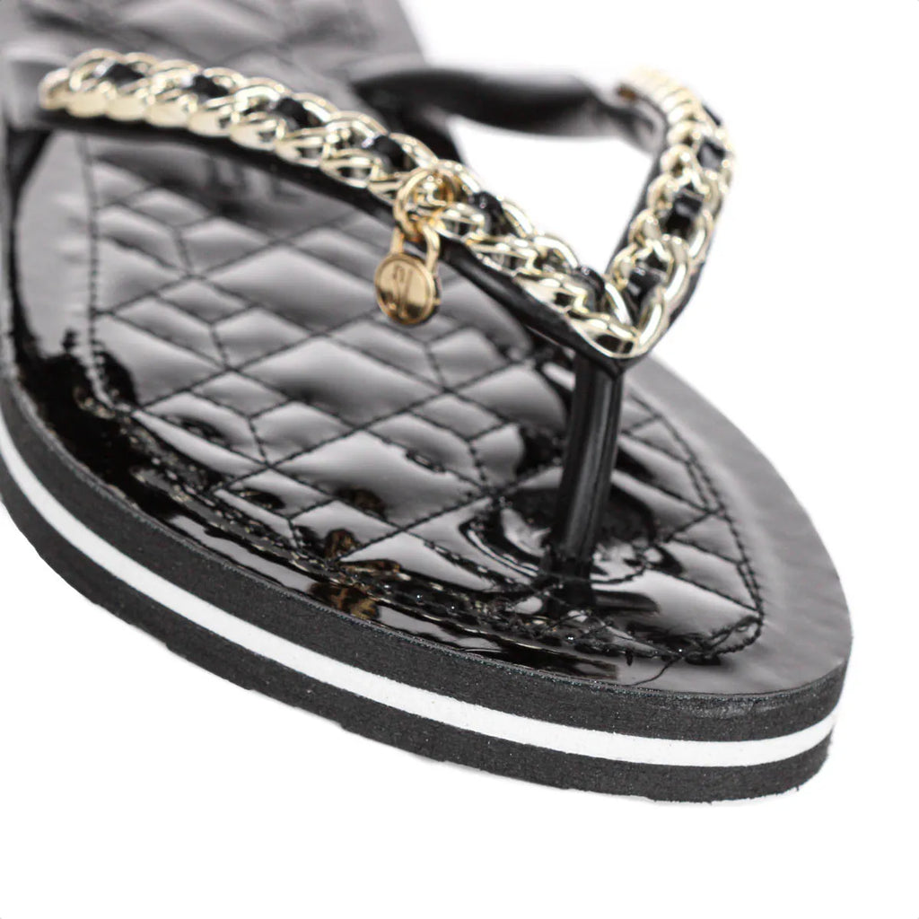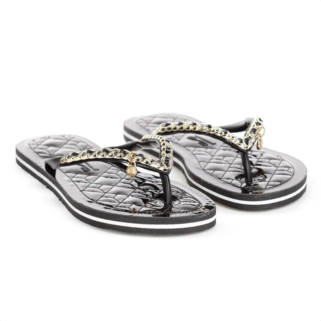 Confeccionado em borracha premium de alta qualidade, oferece palmilha macia e flexível, garantindo conforto incomparável a cada passo. O preto clássico permite combinações versáteis, enquanto o acabamento delicado reforça a sofisticação discreta e atemporal do modelo.