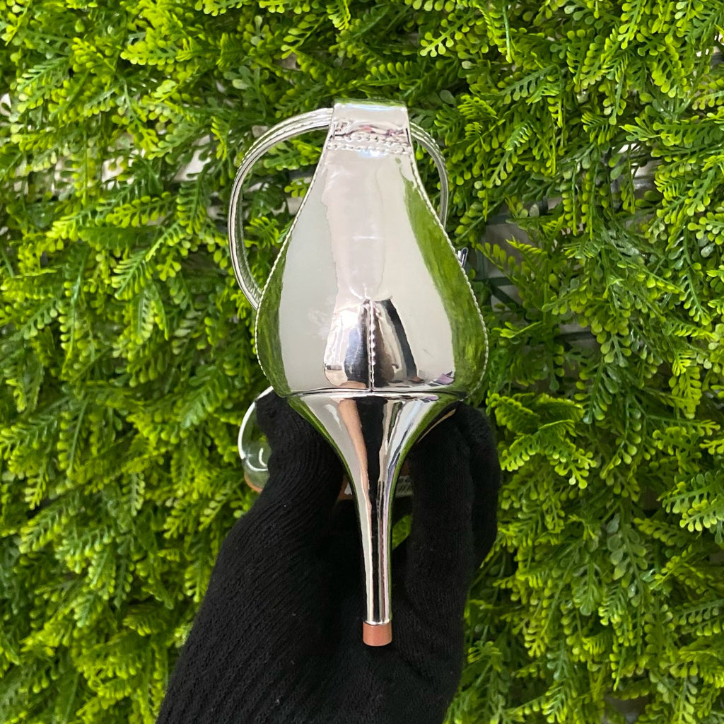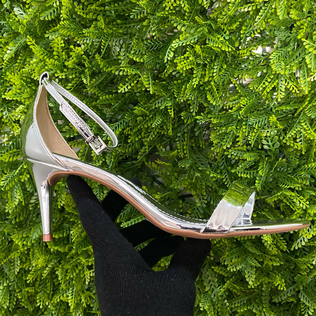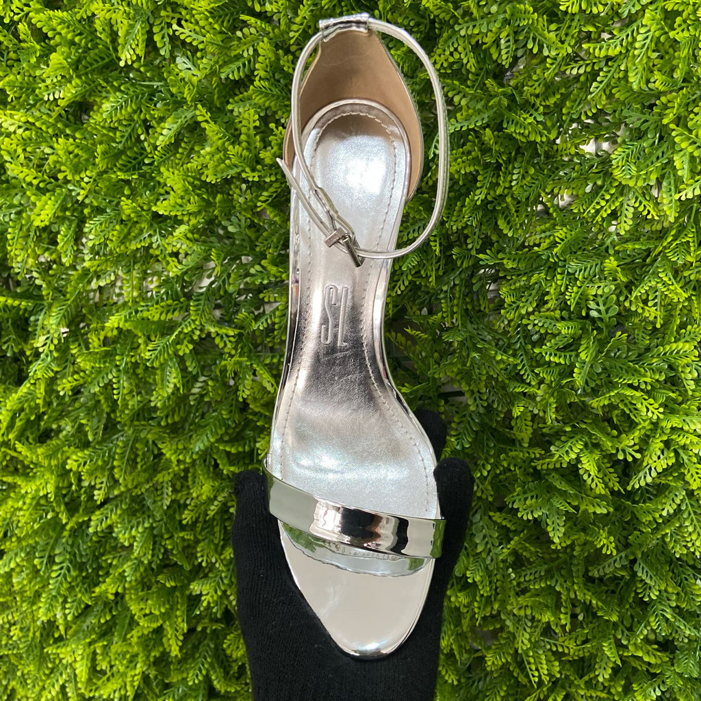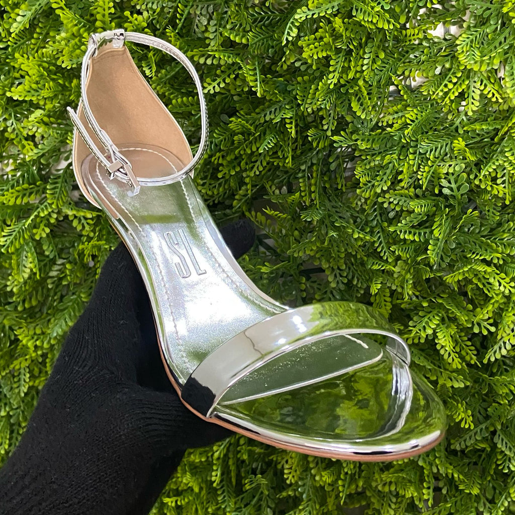 Sandália Metalizada Specchio Prata Salto Fino Médio – Sofisticação, Elegância e Conforto