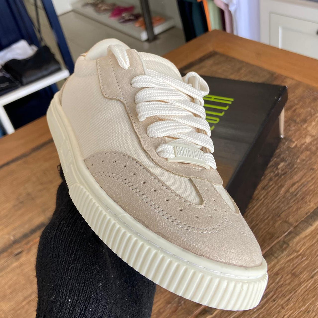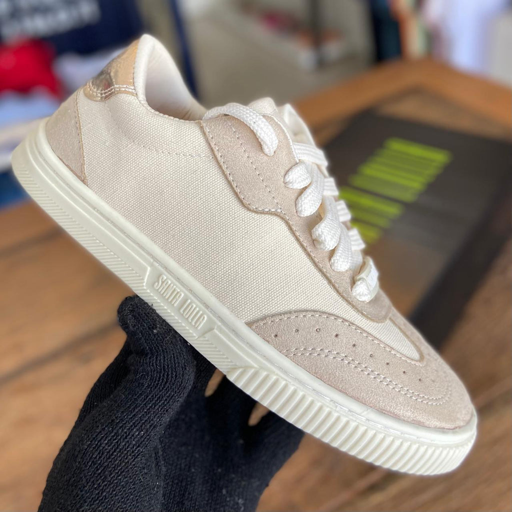 O Tênis Sanzio Bege da Santa Lolla é o equilíbrio perfeito entre estilo contemporâneo e conforto absoluto. Com um design clean e sofisticado, ele é ideal para quem aposta em looks casuais com toque fashion e atemporal. Seu tom bege neutro e elegante combina facilmente com diferentes peças e graças, tornando-se uma verdadeira cura no guarda-roupa.